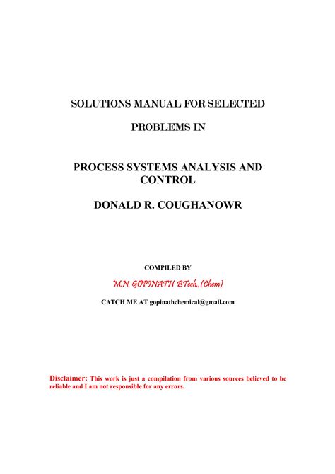 Free PDF Process dynamics and control solution donald coughanowr Audio CD BookBoon