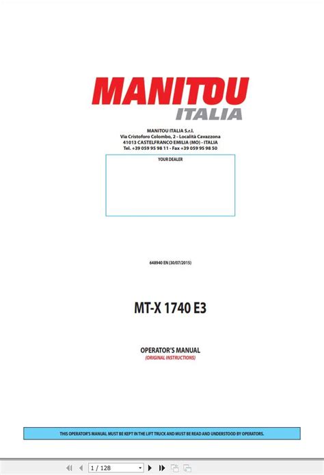 Read Online SERVICE MANUAL FOR MANITOU 1740 Hardcover BookBoon